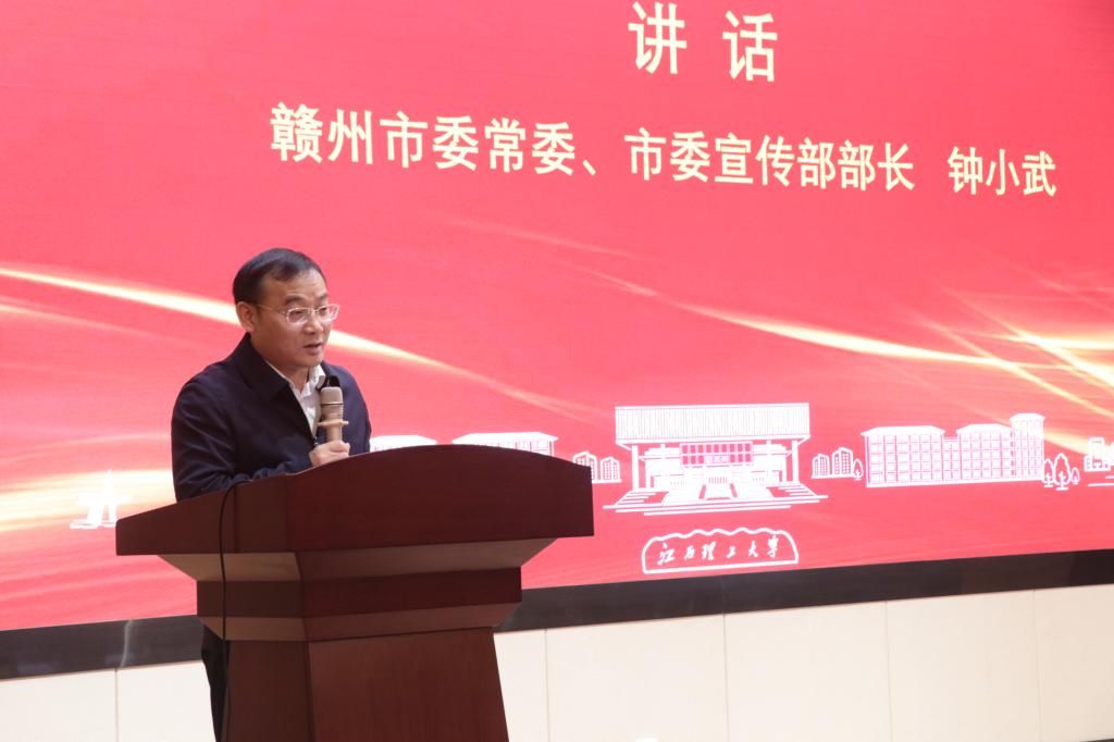 钟小武在讲话中指出,赣州作为原中央苏区的主体和核心区域,不仅见证了中国革命的艰苦卓绝,更孕育了一大批像郭大力这样为理想信念不懈奋斗的时代先驱。他强调要学习郭大力先生的“五种精神”,做到“三个结合”,践行使命担当,奋力书写马克思主义中国化、时代化赣州篇章。赣州市将大力支持江西理工大学郭大力研究院进一步健全研究阵地、搭建交流平台、强化育人功能、深化校地协同,推动研究成果更好地服务赣州苏区振兴发展。