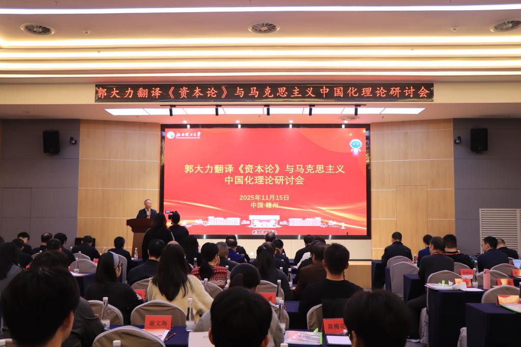本网讯 今年是《资本论》首个中文全译本主要译者郭大力先生诞辰120周年。11月15日,“郭大力翻译《资本论》与马克思主义中国化理论研讨会”在我校隆重举行。本次会议由江西理工大学、全国红色基因传承研究中心赣州分中心、赣州市红色文化研究会联合主办,江西理工大学郭大力研究院、江西理工大学社会科学处、江西理工大学马克思主义学院承办,江西省社科联《老区建设》编辑部、江西理工大学期刊社与出版中心、《红色文化学刊》编辑部协办。全国30余所高校和研究机构共近100名专家学者、教师及研究生代表参加会议。