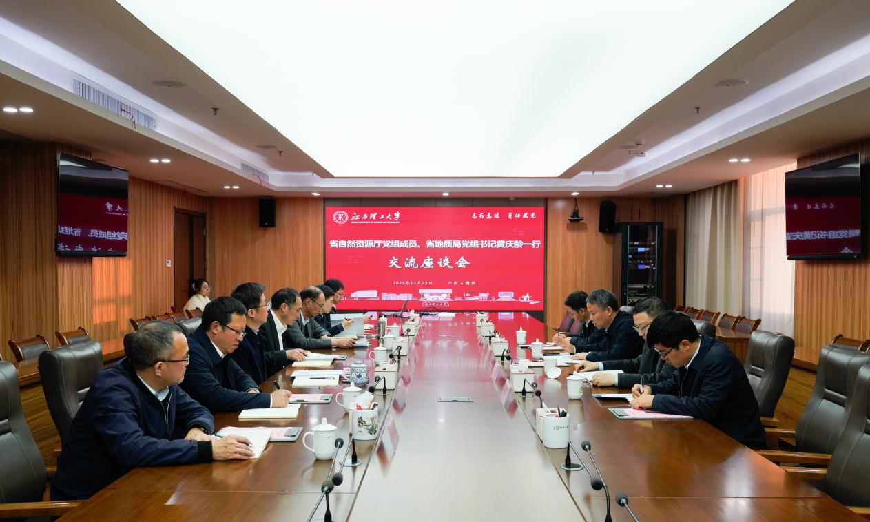 本网讯 12月23日,省自然资源厅党组成员、省地质局党组书记黄庆龄一行来访我校,校党委书记刘祖文,中国工程院院士、校长葛世荣出席,双方就深化局校合作进行了深入交流。省地质局党组成员、副局长吴俊华,校领导徐志峰、熊志华、汪航参加座谈。