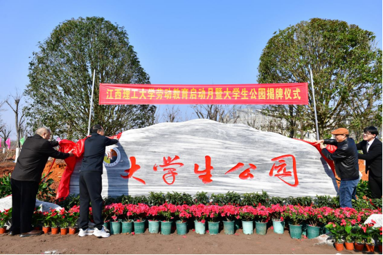 本网讯春和景明,万物竞发。3月11日,在植树节来临之际,江西理工大学劳动教育启动月暨大学生公园揭牌仪式在三江校区东园举行,同步开展师生植树活动。校党委书记刘祖文,中国工程院院士、校长葛世荣等在家校领导、党委常委出席,厦门校友联谊会会长周朝炊、副会长兼秘书长李延鹃等校友代表应邀参加。学校相关职能部门与学院负责人、“一站式”学生社区代表及师生代表共同参与,仪式由校党委副书记徐志峰主持。
