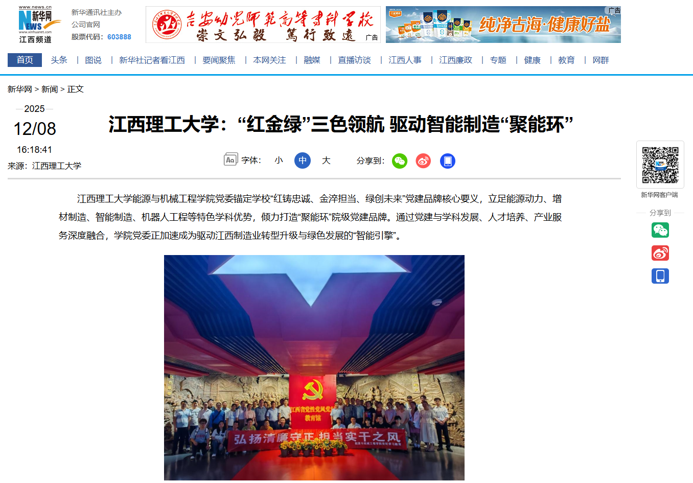 江西理工大学能源与机械工程学院党委锚定学校“红铸忠诚、金淬担当、绿创未来”党建品牌核心要义,立足能源动力、增材制造、智能制造、机器人工程等特色学科优势,倾力打造“聚能环”院级党建品牌。通过党建与学科发展、人才培养、产业服务深度融合,学院党委正加速成为驱动江西制造业转型升级与绿色发展的“智能引擎”。