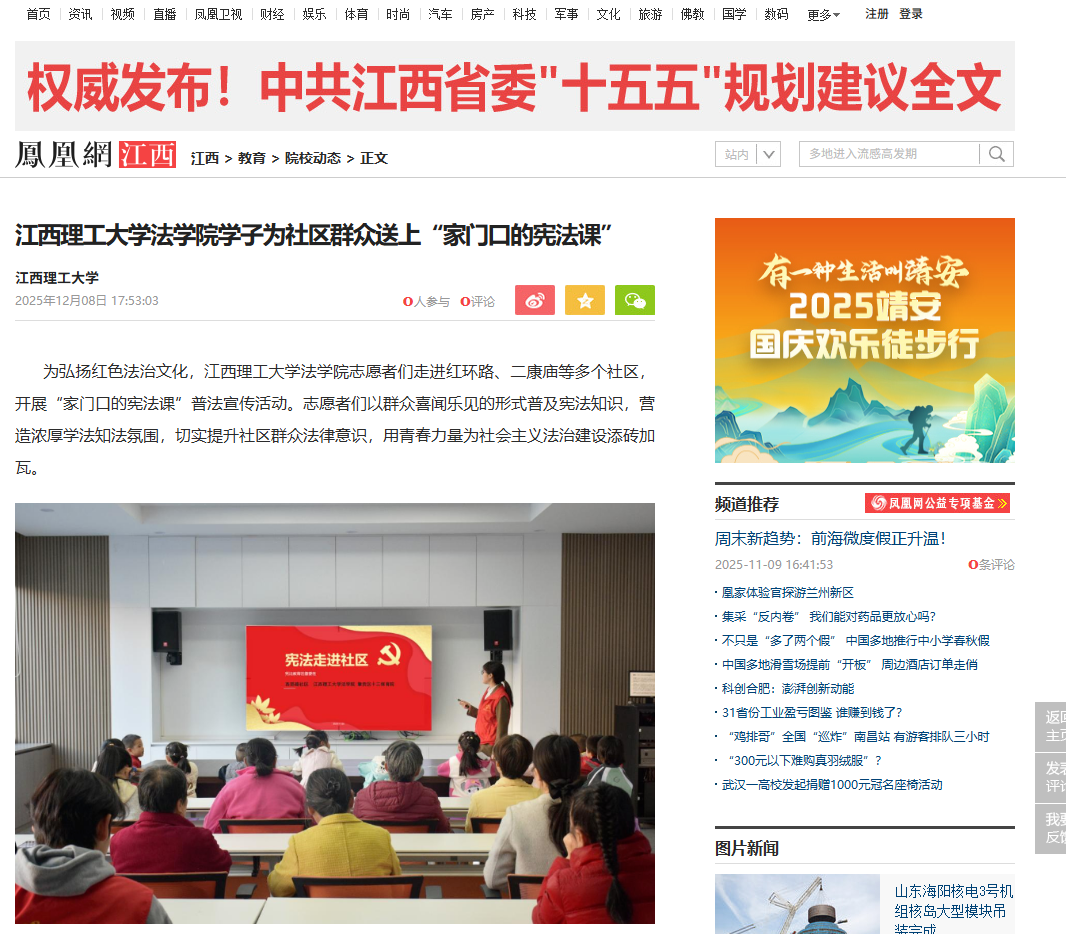 为弘扬红色法治文化,江西理工大学法学院志愿者们走进红环路、二康庙等多个社区,开展“家门口的宪法课”普法宣传活动。志愿者们以群众喜闻乐见的形式普及宪法知识,营造浓厚学法知法氛围,切实提升社区群众法律意识,用青春力量为社会主义法治建设添砖加瓦。