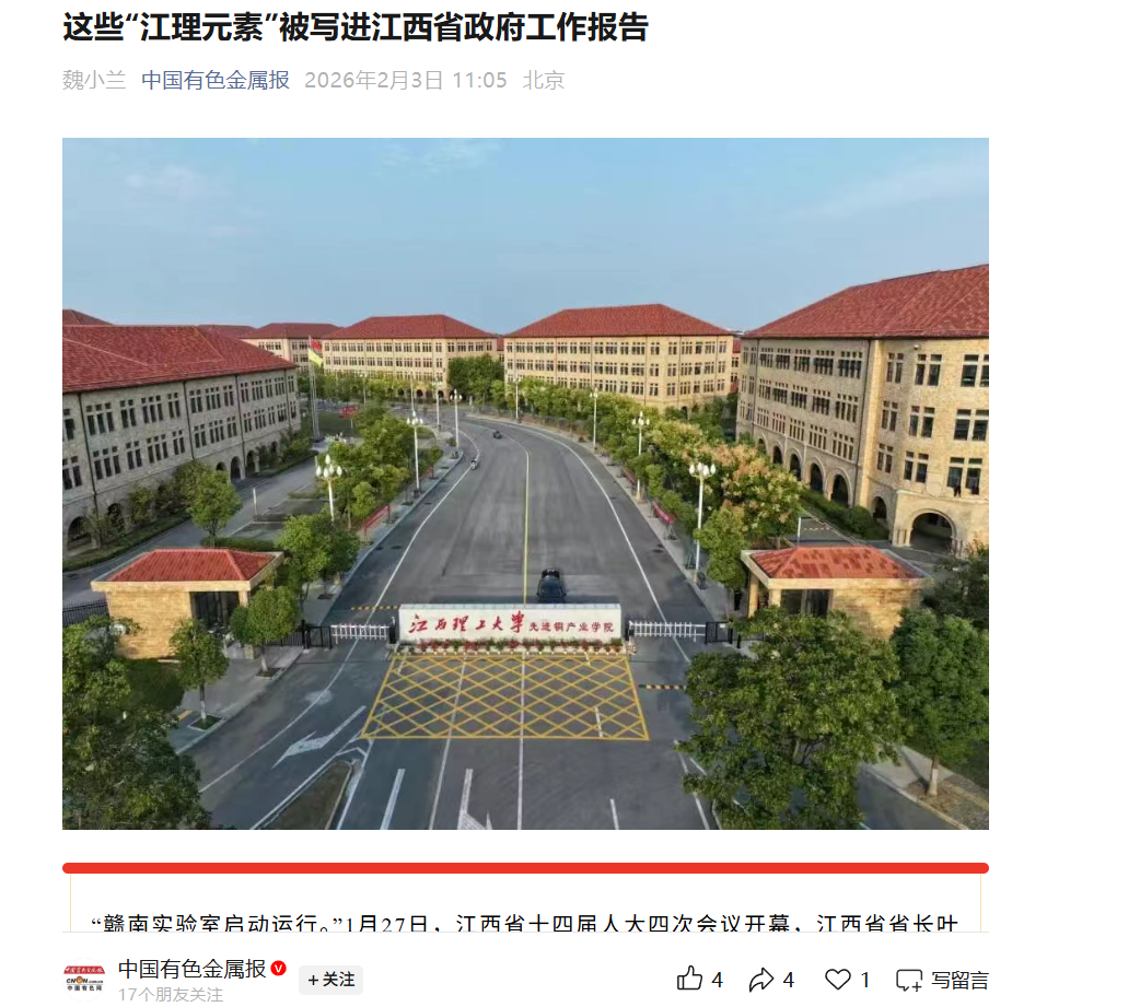 《中国有色金属报》:这些“江理元素”被写进江西省政府工作报告