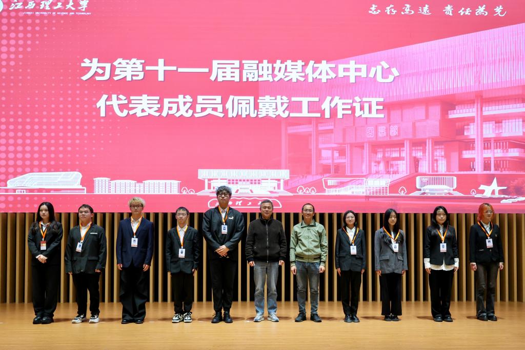 余夏静宣读了第十一届融媒体中心主席团及主要负责人名单。盛晓明、钟峻燕为新一届主席团及各部门负责人佩戴工作证,其余全体成员同步佩戴,标志着新一届团队正式履职。