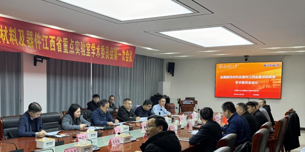 本网讯 12月20日,金属磁性材料及器件江西省重点实验室(以下简称“重点实验室”)学术委员会第一次会议在国家稀土功能材料创新中心顺利召开。会议由金属磁性材料及器件江西省重点实验室主办,我校稀土学院和国家稀土功能材料创新中心共同承办。北京航空航天大学于荣海教授、北京理工大学沈俊教授、北京工业大学教授岳明、天津工业大学张雪峰教授、杭州电子科技大学王敦辉教授、华南理工大学刘仲武教授、福建省金龙稀土股份有限公司黄清芳高级工程师等专家出席了此次会议。我校党委常委、统战部部长汪锋锁,科技处处长吴彩斌,稀土学院副院长黄建辉以及重点实验室部分成员参加会议,会议由稀土磁性材料及器件研究所副所长杨牧南教授主持。